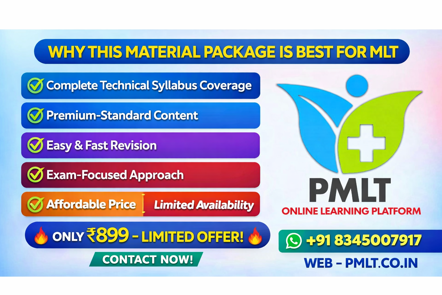 Your Complete MLT Selection System Starts Here. One Platform with Notes, Short Notes, One Liners, MCQs, and Full Digital Resources in One Click. Designed for Serious Aspirants Who Aim for Selection, Not Just Preparation. Limited Time Offer — Upgrade Your Preparation and Secure Your Rank Today.